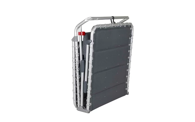 Sie kann sehr flach zusammengeklappt werden, und ist mit den Tragegriffen leicht zu tragen.