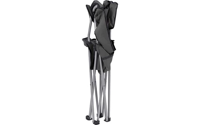 Gestänge aus stabilem Stahlrohr. Getränkehalter in der Armlehne.